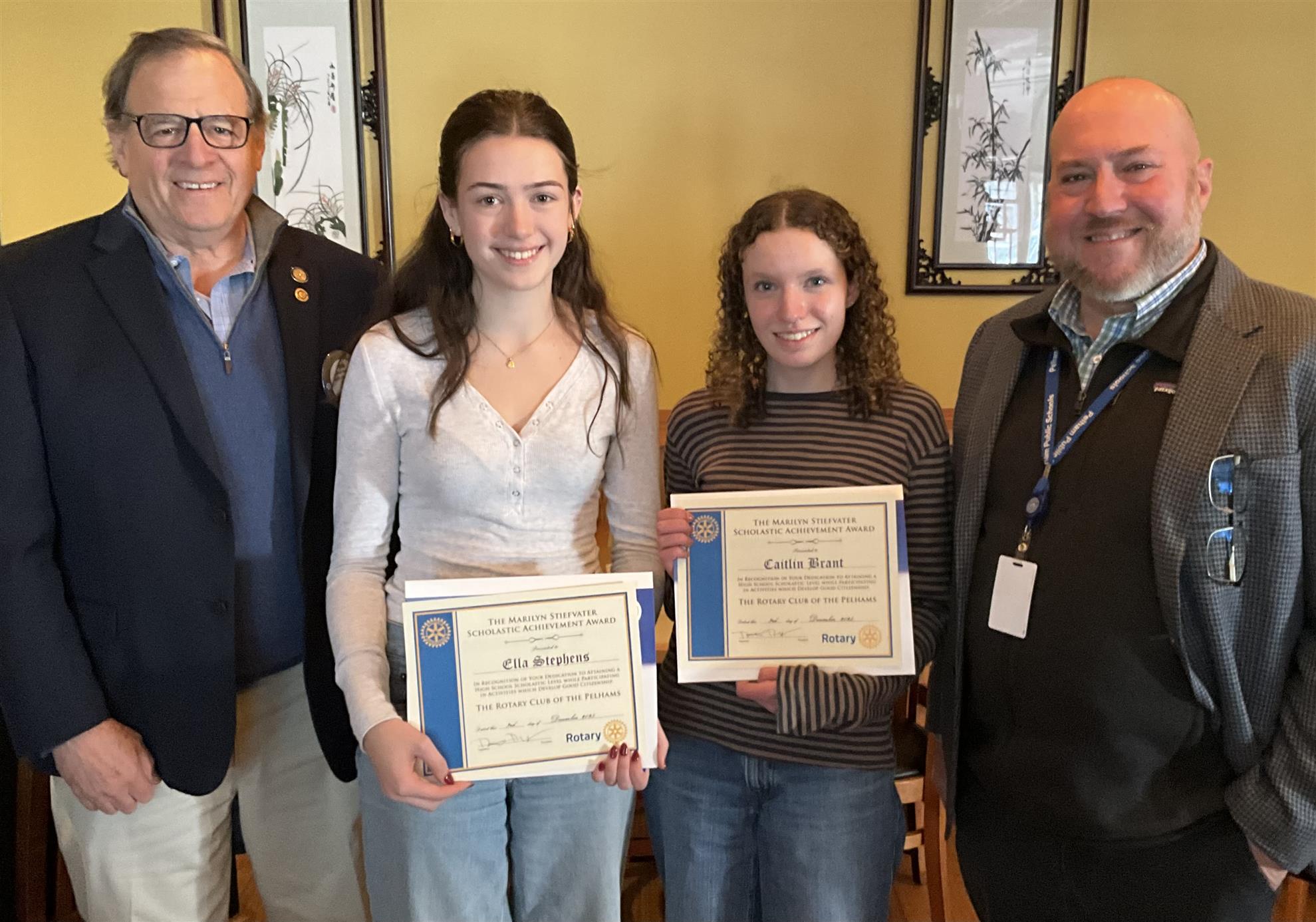 Rotary Club of the Pelhams recognized PMHS seniors Ella Stephens and Caitlin Brant as Marilyn Stiefvater Scholars of the Month for December.